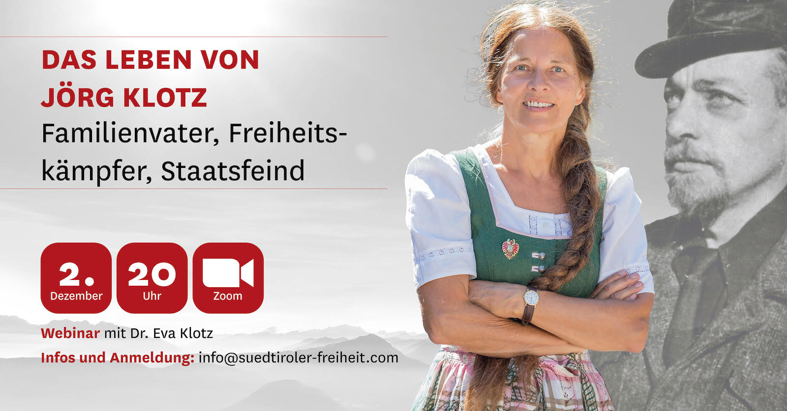 Dr. Eva Klotz, Historikerin und Tochter von Jörg Klotz, wird bei einem Online-Vortrag auf die Geschichte jenes Mannes eingehen, der schon als Kind und Jugendlicher die Gewaltherrschaft der Faschisten erlebt; der sich nach dem Zweiten Weltkrieg zum Kampf gegen die Unterdrückungspolitik Italiens entschließt; der Anschläge auf die Symbole des Staates verübt, aber niemals auf Menschen; der zum Staatsfeind Nummer eins „aufsteigt“ und eine ganze Armee in Atem hält; der verfolgt, gejagt, verwundet und verraten wird; und der erst als Toter in seine Heimat, für die er Familie und Besitz zurückgelassen hat, heimkehren darf.