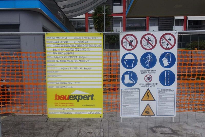 Warum kontrolliert die Gemeinde Bozen nicht die Zweisprachigkeitsbestimmungen bei der Beschilderung der von ihr genehmigten Baustellen? So wurden für die Renovierung einer Tankstelle in der Reschenstraße 18 wieder nur einsprachige Warn-…